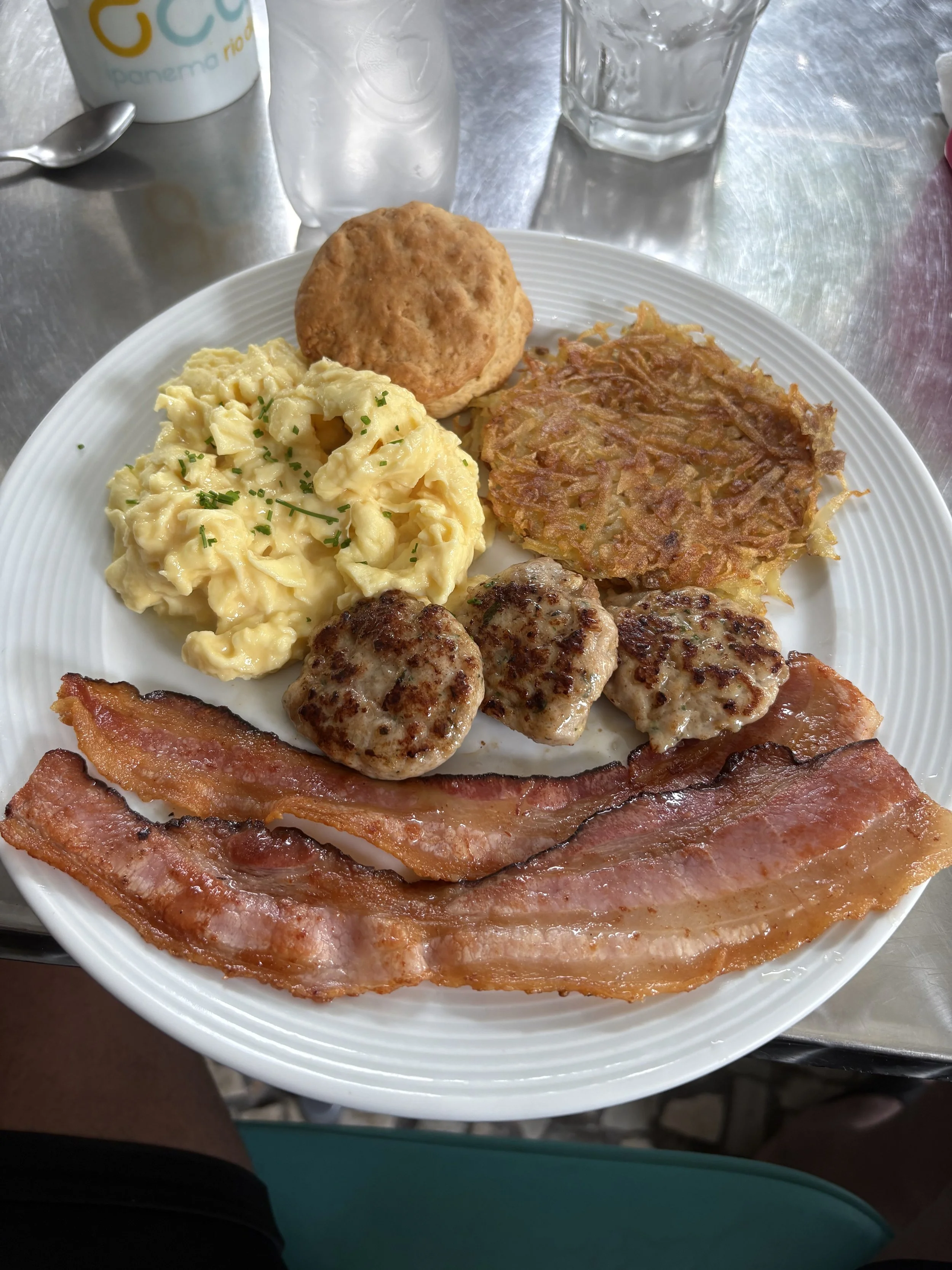 Something I did miss while in Brazil is a classic American breakfast. We found Gringo Café, which is located in Ipanema. They had some of the best American breakfast I have ever eaten. I would even say it's better than most of the American breakfast that I get in the United States. They had great coffee, pancakes, eggs, biscuits, bacon—you name it, they had the best and freshest food. Not only was their food good, but their staff was amazing and everyone was so welcoming.